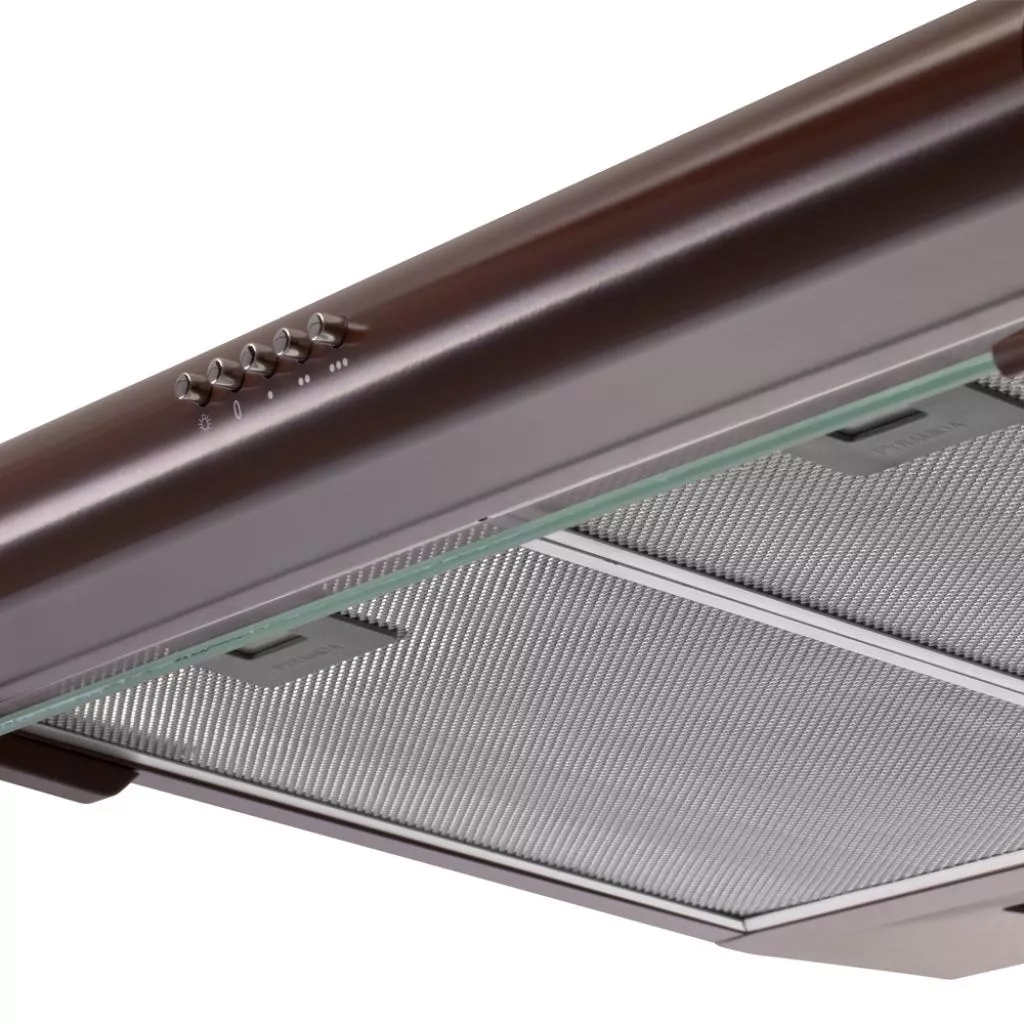 Вытяжка кухонная PYRAMIDA WH 10-50 brown (WH 10-50 brown) - стильная плоская вытяжка от известного производителя PYRAMIDA. Она украшена откидным стеклянным козырьком, который не только является декоративным элементом, но и удерживает пар, который поднимается вверх от варочной поверхности. А установка этой плоской вытяжки не требует обязательного ремонта на кухне - ее можно крепить к нижней плоскости кухонного шкафчика. В этой вытяжке предусмотрено освещение при помощи ламп по 40 Вт каждая, благодаря которым освещается рабочая зона. Подсветка может быть весьма кстати, если возле кухонной плиты плохое освещение.