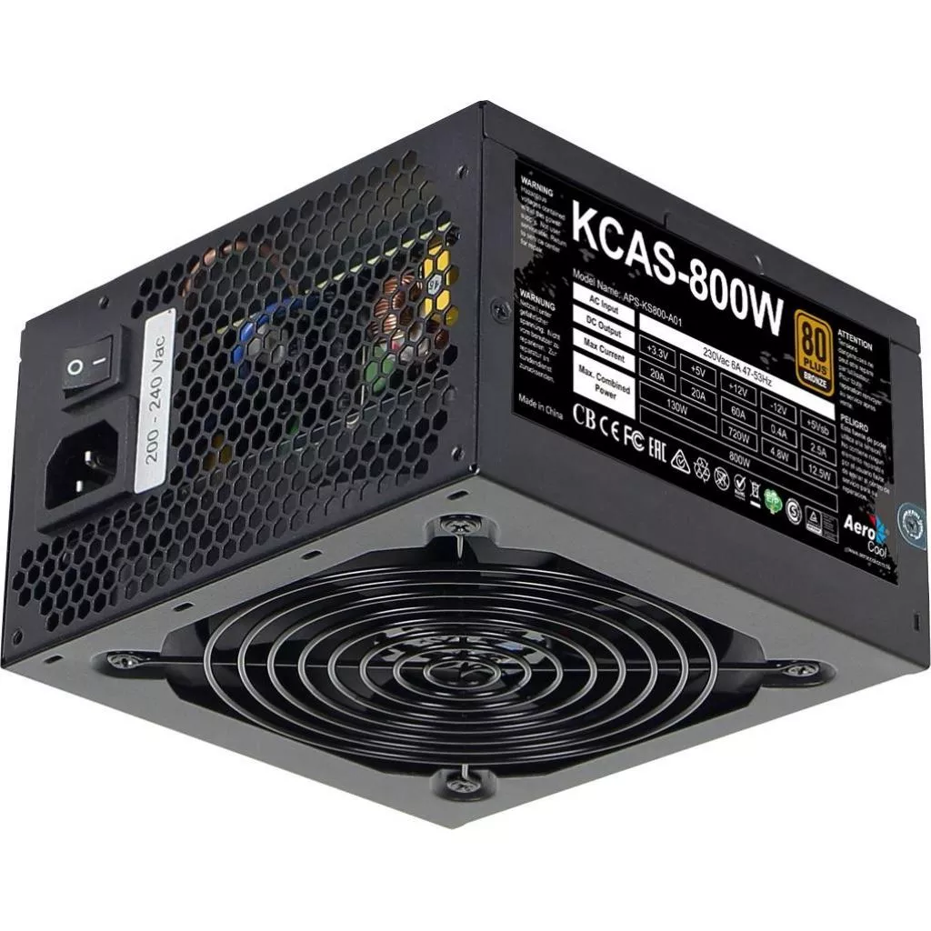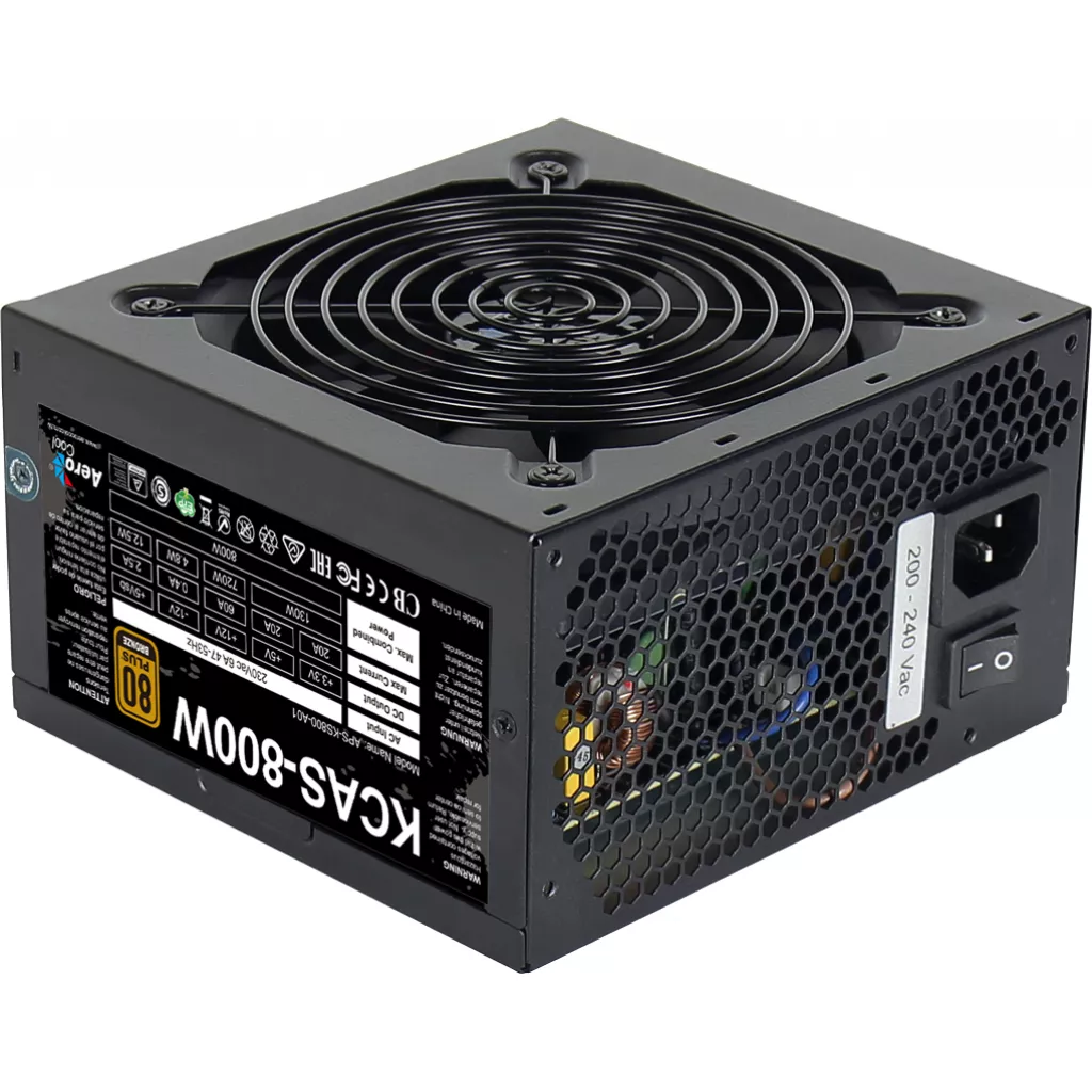 Aerocool KCAS-800 — блок питания форм-фактора ATX с выходной мощностью 800 Вт. Блок имеет систему коррекции мощности, систему охлаждения состоящую из 120 мм вентилятора и несколько уровней защиты.