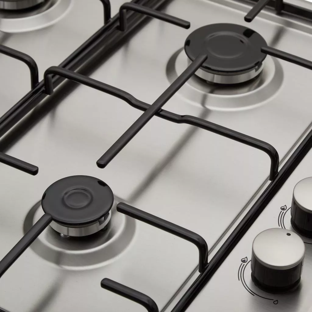 Ручки расположены ниже уровня решеток, что делает невозможным их контакт с горячей посудой и предотвращает нагревание. Кроме того, быстрая конфорка расположена спереди слева, что позволяет использовать посуду больших объемов и защищает поверхность стены от нагрева. Варочная поверхность комплектуется форсунками как для подключения к газовой магистрали, так и к газовому баллону .
