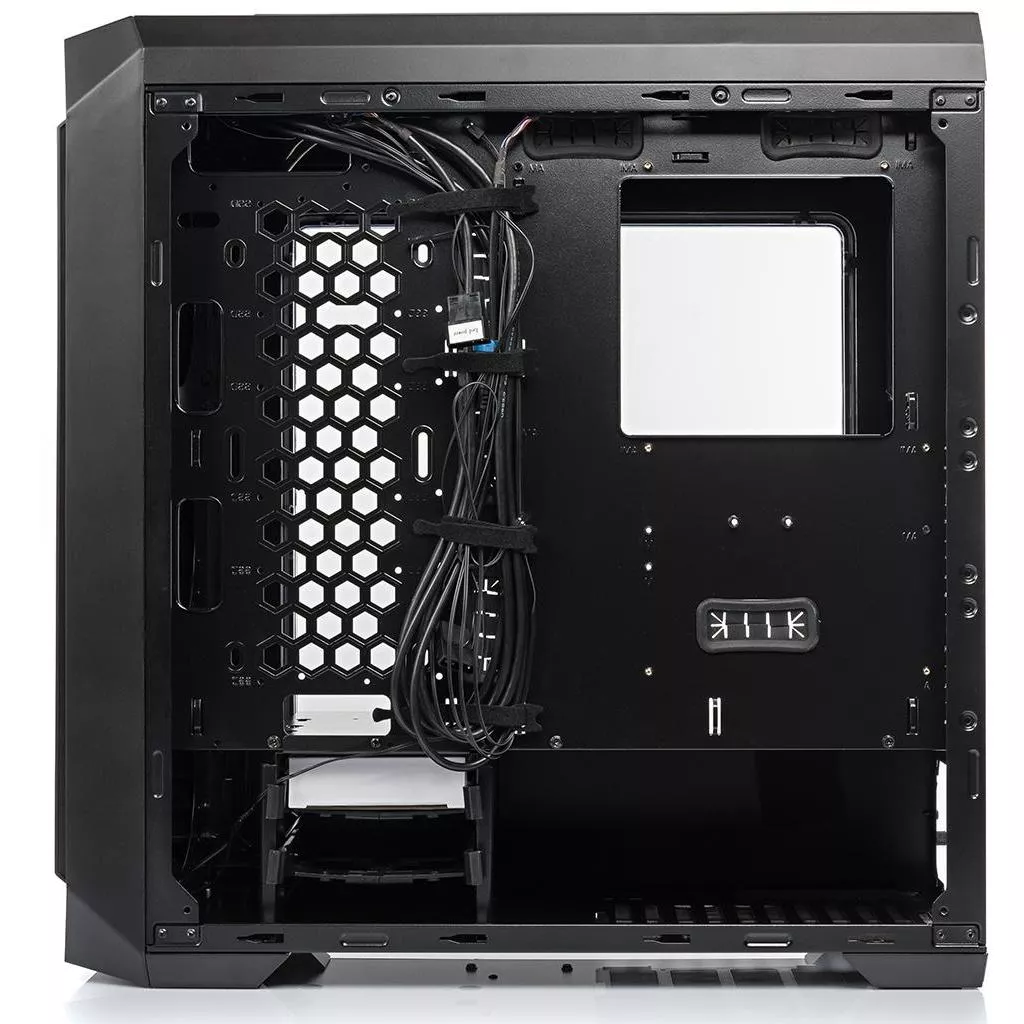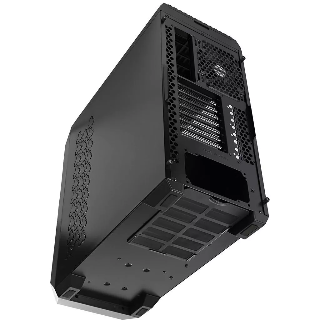 Корпус Vinga Cobalt предназначен для игровых компьютеров. Он обладает внушительными габаритами, но является достаточно компактным, чтобы поместиться в специальной ячейке тумбы офисного стола. В него можно монтировать один из трех самых распространенных типоразмеров материнских плат ITX и ATX: стандартный, micro или mini. В комплект входит встроенный внутрь блока вентилятор диаметром 12 см, который эффективно обеспечит продув нагревшихся деталей для выведения горячего воздуха за пределы корпуса через вентиляционные решетки. Есть места для установки двух дополнительных вентиляционных устройств. Предусмотрен отсек для монтажа процессорного кулера высотой до 180 мм. Также в Cobalt можно установить видеокарту длиной до 44 см и блок питания размером не более 23.8 см.