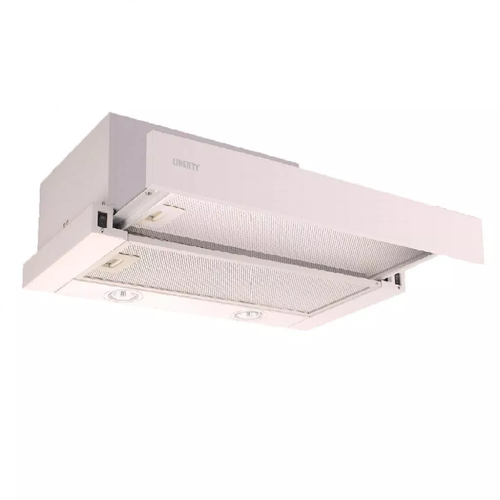 Кухонная вытяжка Liberty Slide 265 обладает производительностью 550 м.куб/ч. и оснащен двумя двигателями мощностью по 80 Вт. Кнопки управления спрятаны за выдвижной панелью. Также в данной модели предусмотрено галогеновое освещение, которое позволит качественно освещать рабочее пространство. Работает вытяжка в двух скоростных режимах и оборудована двумя алюминиевыми фильтрами для очистки воздуха от жира и копоти. Они легко снимаются и моются. Ширина данной модели – 60 см.