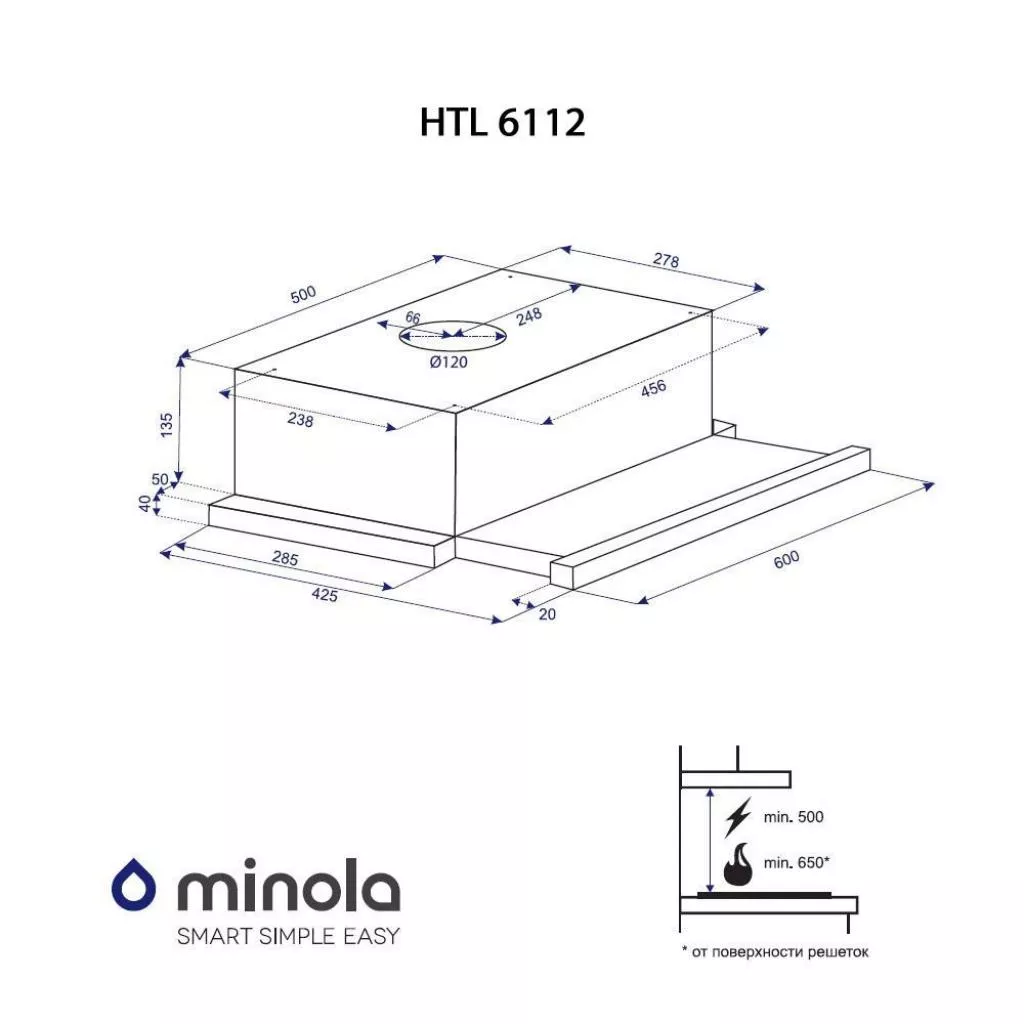 Функциональная, компактная, стильная — все это о встраиваемой телескопической вытяжке MINOLA HTL 6112 BL 650 LED от компании MINOLA.