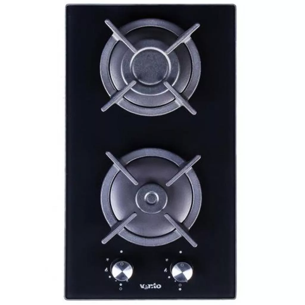 – независимая. Работает от газа. Поверхность выполнена из закаленного стекла, держатели покрыты эмалью. Имеется электроподжиг, он находится в ручке. Это существенно облегчает пользование поверхностью. Всего поверхность насчитывает в себе две конфорки: большая тройная конфорка мощностью в 3000 ватт, и средняя конфорка – 1000 ватт. Ширина варочной поверхности равна 30 сантиметрам. Цвет всей поверхности черный. Варочная поверхность удобна в использовании и уборке