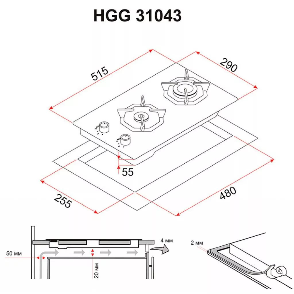Варочная панель снабжена 2 газовыми конфорками различного размера и мощностей, подходящими для посуды различного диаметра. Различный размер конфорок обеспечит разную мощность подачи газа и дает возможность как быстро нагреть воду, так и долгое время тушить блюдо на медленном огне. Также поверхность оснащена высококачественными чугунными подставками для посуды, которые прослужат вам годы и никогда вас не подведут.