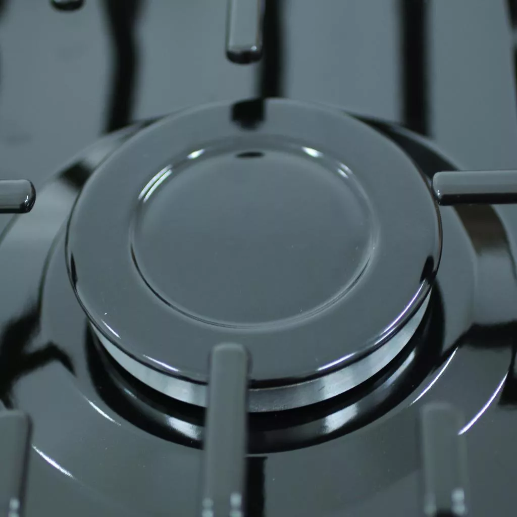 Газовая варочная поверхность ELEYUS GRACIA 60 BL E оснащена четырьмя конфорками: одной быстрой (2,5 КВт), двумя полубыстрыми (1,7 КВт каждая) и одной вспомогательной (0,9 КВт).