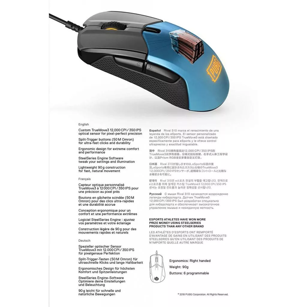 Чтобы мышь получилась очень легкой (весом 88,3 г), все материалы для Rival 310 подбирались особенно тщательно с учетом их веса и прочности.
