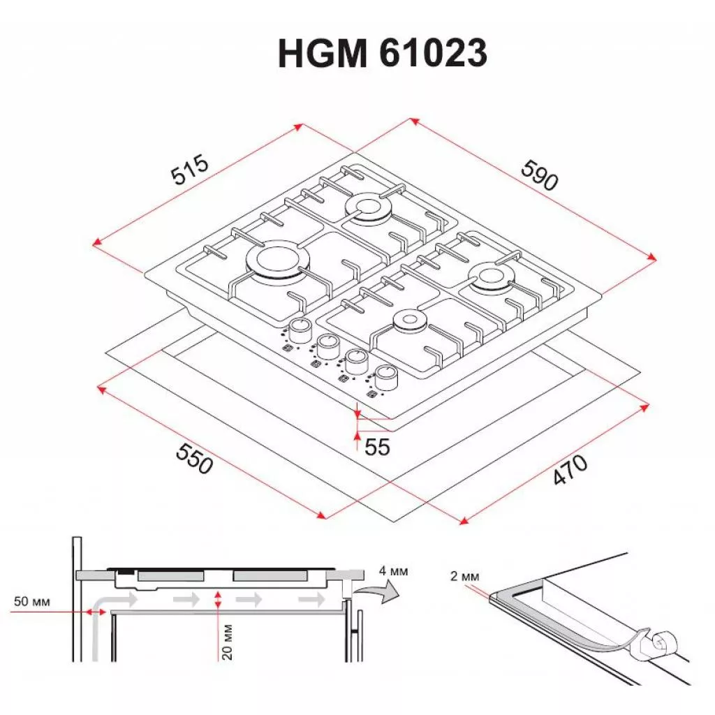 Предусмотренный в комплекте переходник для баллонного газа позволит без проблем установить поверхность в загородном доме без системы централизованной подачи природного газа.