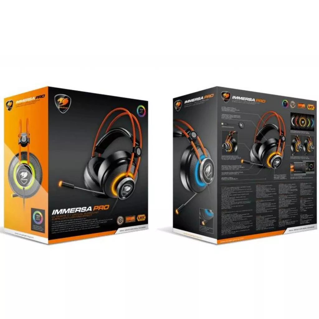 Наушники Cougar Immersa Pro — это исключительная игровая гарнитура. Виртуальный окружающий звук формата 7.1 позволит вам по-настоящему погрузиться в жаркую атмосферу сражения. Благодаря полностью настраиваемой RGB-подсветке и различным режимам освещения вы всегда будете в центре внимания! Игровая гарнитура Cougar Immersa Pro станет отличным выбором для желающих получить не только мощное, но и стильное игровое оружие.