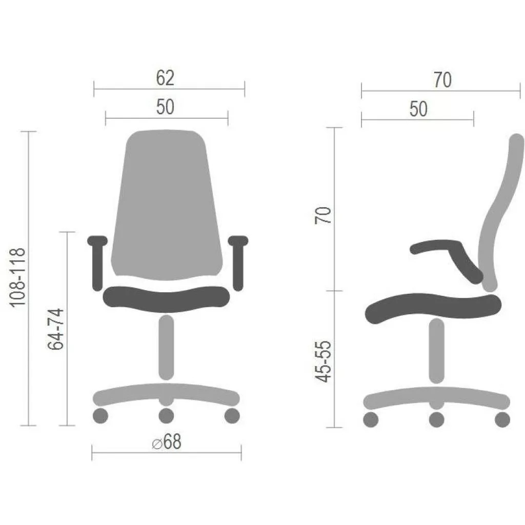 В верхнем положении кресло имеет высокую посадку, что подойдет людям высокого роста.