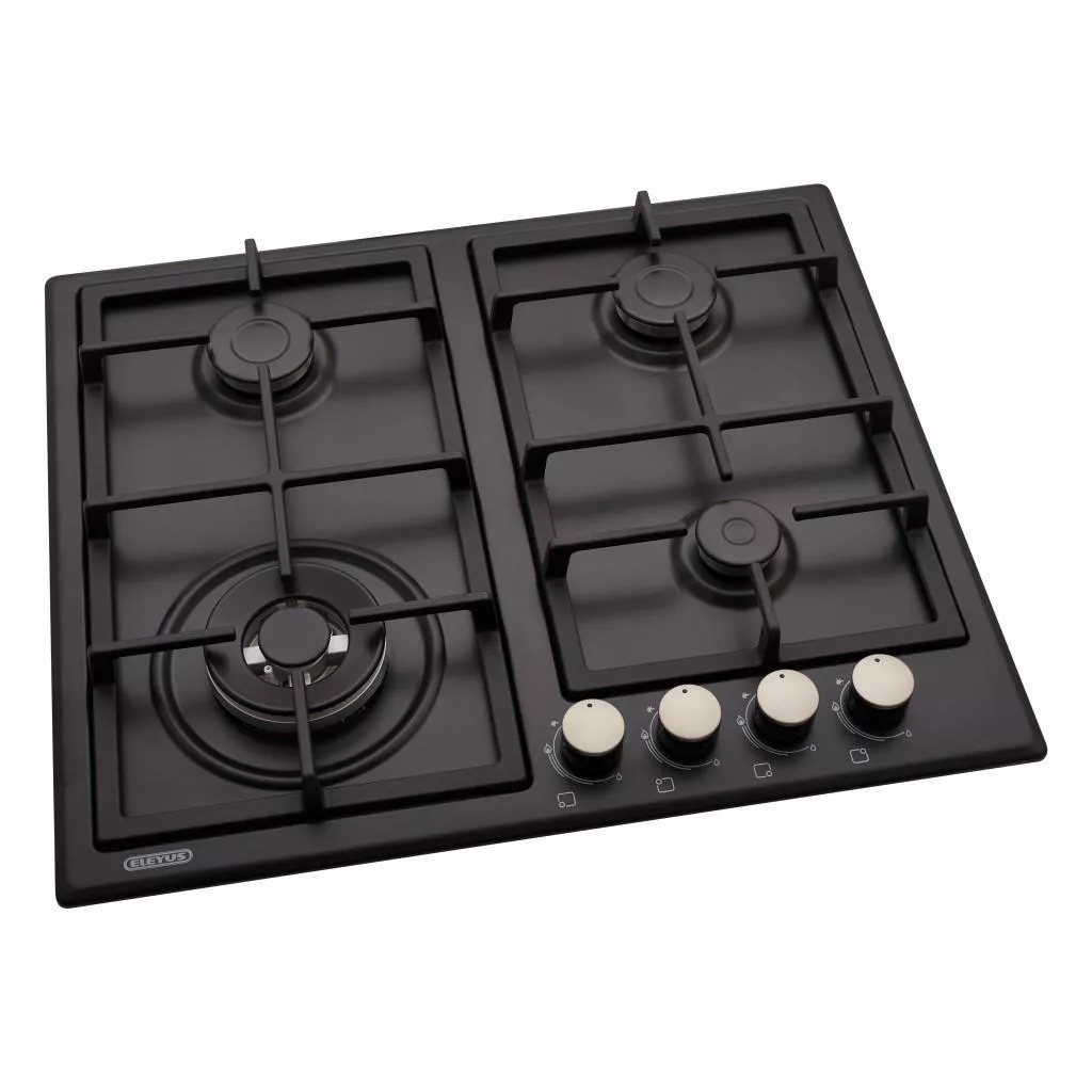 Команда ТМ ELEYUS позаботилась, чтобы пользование газовой поверхностью, а вместе с тем и приготовления пищи, стало для Вас максимально удобным и комфортным и приносило только удовольствие. Ручки управления расположены в правой части поверхности, на безопасном расстоянии от вспомогательной горелки.