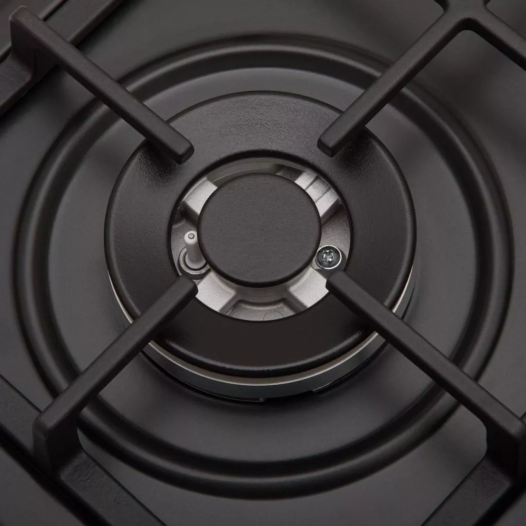Газовая варочная поверхность оборудована четырьмя конфорками: одной сверхбыстрой (WOK от итальянского бренда SABAF) (3,5 кВт), двумя полубыстрыми (1,75 кВт каждая) и одной вспомогательной (1 кВт). Электроподжиг с управлением в ручке облегчает управления прибором и делает его более безопасным.