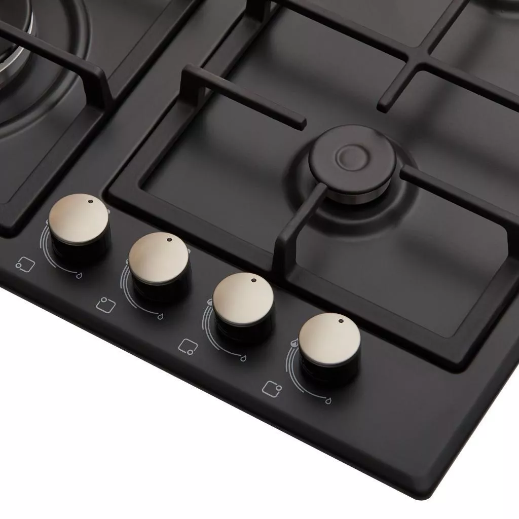 Ручки расположены ниже уровня решеток, что делает невозможным их контакт с горячей посудой и предотвращает нагревание. Кроме того, быстрая конфорка расположена спереди слева и частично выдвинута вперед, что позволяет использовать посуду больших объемов и защищает поверхность стены от нагрева. Газовая варочная поверхность комплектуется форсунками как для подключения к газовой магистрали, так и к газовому баллону .
