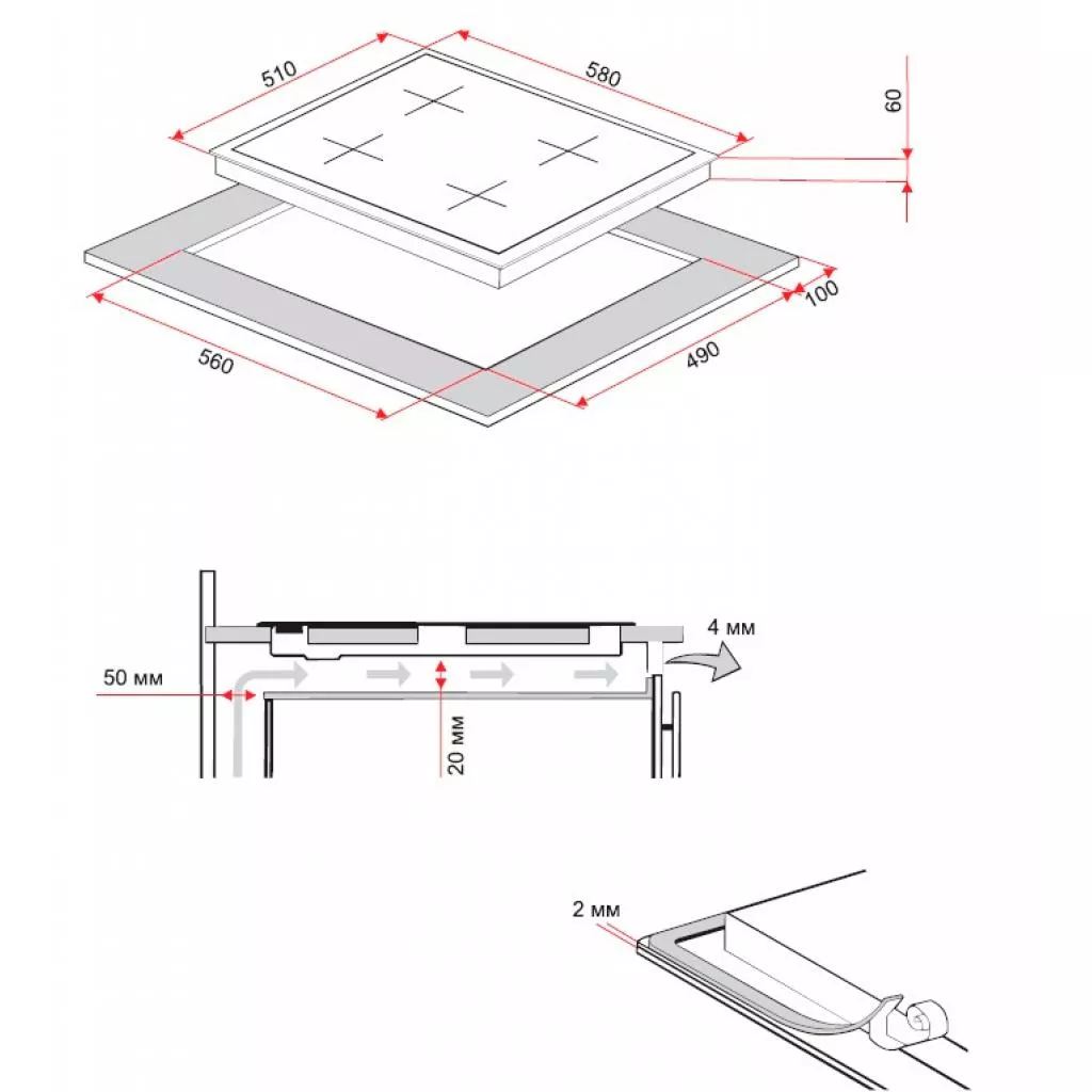 Диаметр и мощность конфорок | Передняя правая 1 кВт, Задняя левая 1.5 кВт, Передняz левая 1.75 кВт, Задняя правая 3 кВт |