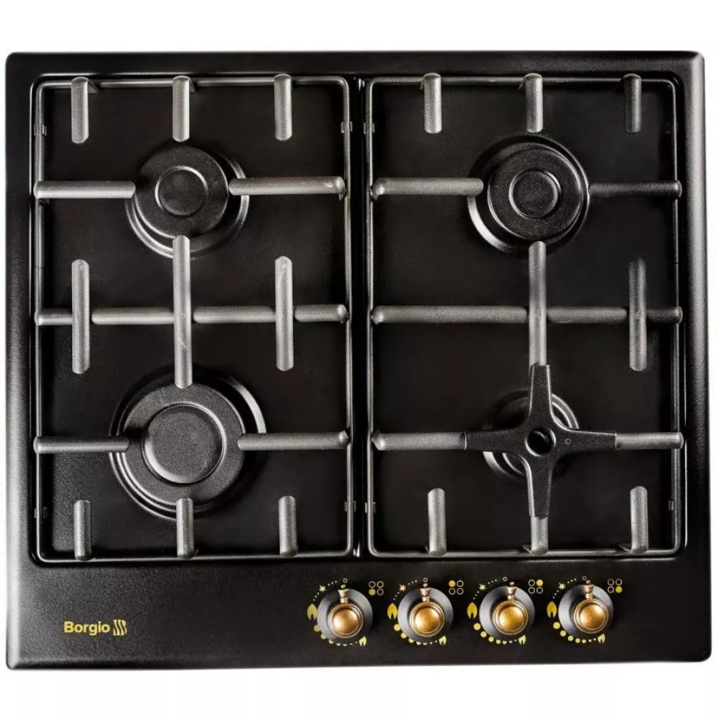 Варочная поверхность Borgio 6621(Antrasit Rustic) имеет традиционное, фронтальное расположение ручек управления, при нажиме которых активизируется система автоподжига, благодаря наличию возле каждой из 4 конфорок пьезоэлемента.