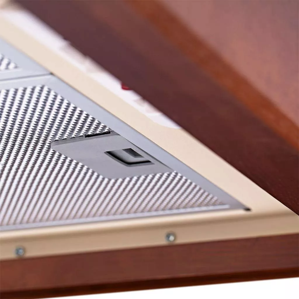 Вытяжка Pyramida KH60 Wood Ivory может работать как в режиме отвода воздуха, так и в режиме его рециркуляции. В первом случае требуется подключение к центральной вентиляционной шахты, а во втором необходима установка дополнительного угольного фильтра для нейтрализации неприятных запахов. В нижней части вытяжки расположена удобная механическая панель управления для выбора одной из 3-х скоростей, а также включения дополнительного освещения. Жировые фильтра вытяжки предназначены для удаления жира из воздуха перед его последующим выводом в систему вентиляции либо возврата на кухню в уже очищенном состоянии.