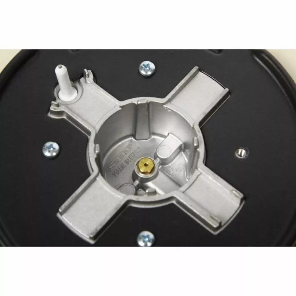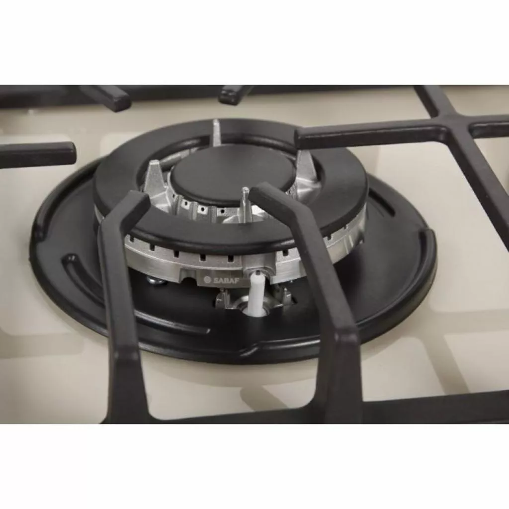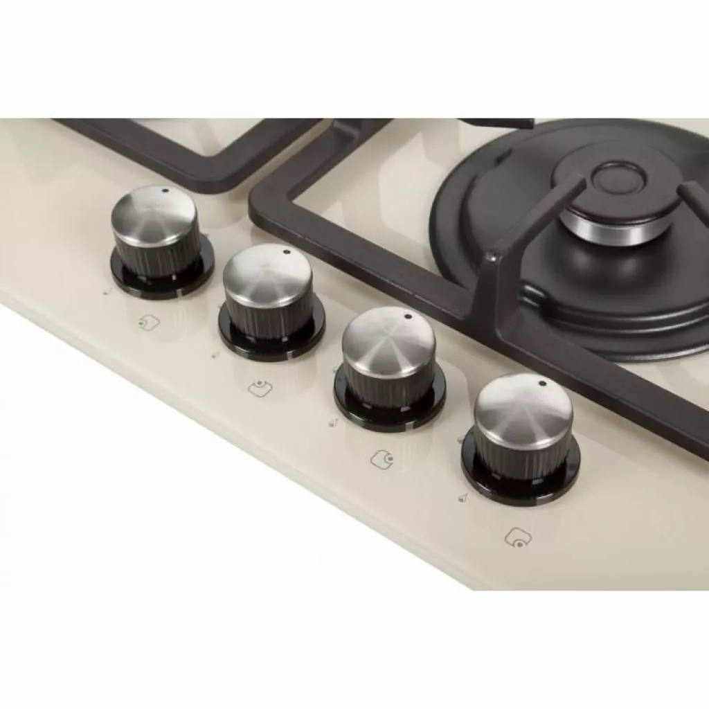 Полезной функцией будет и электроподжиг расположенный в ручке. Бывают случаи затухания пламя горелки (сквозняк, закипание и т.д.), для таких случаев установлена система газ-контроля. Система обеспечивает безопасность, перекрывая к конфорке подачу газа. Над варочной поверхностью расположены чугунные держатели, которые удерживают посуду во время приготовления.