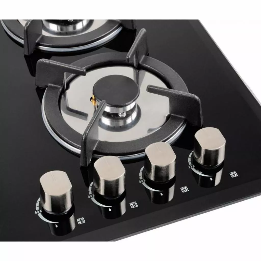 Модель оснащена 4 конфоркам: большой с тройным рядом пламени на 3 кВт, двумя средними по 1.7 кВт, и небольшой на 1 кВт. Самая большая конфорка применяется для быстрого разогрева блюд, средник – повседневные, а самая маленькая предназначена для турок, ковшей и небольших сковородок. Ручки находятся под наименьшей конфоркой, таким образом, не подвергаются воздействию огня.