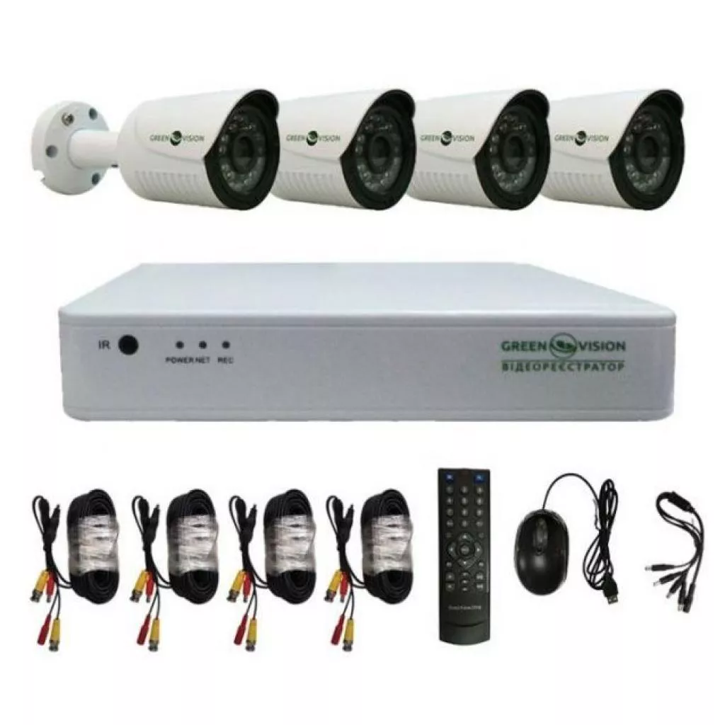 Green Vision GV-K-G02/04 720Р - это недорогой комплект AHD видеонаблюдения на базе сверх компактного гибридного AHD видеорегистратора для записи с четырех камер в широком формате до 720Р и четырех всепогодных камер видеонаблюдения для улицы с поддержкой ночного видения. В комплектации также имеются соединительная кабеля для подключения камер к регистратору, мышка и пульт ДУ, видеокабель BNC - RCA, БП и сетевой кабель под RJ-45. Как итог комплект содержит все необходимое для построения качественной системы видеонаблюдения на объектах небольшой величины но с повышенными требованиями к качеству мониторинга.