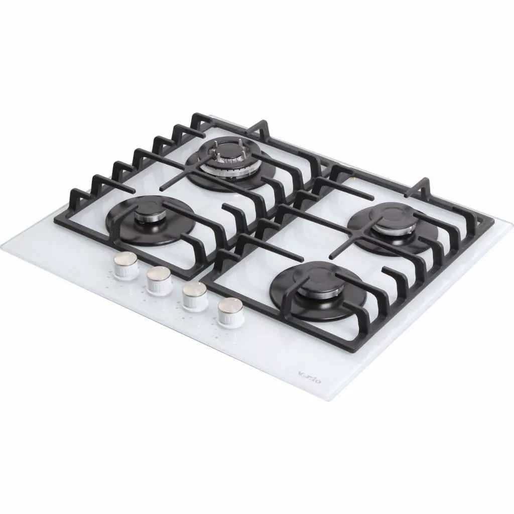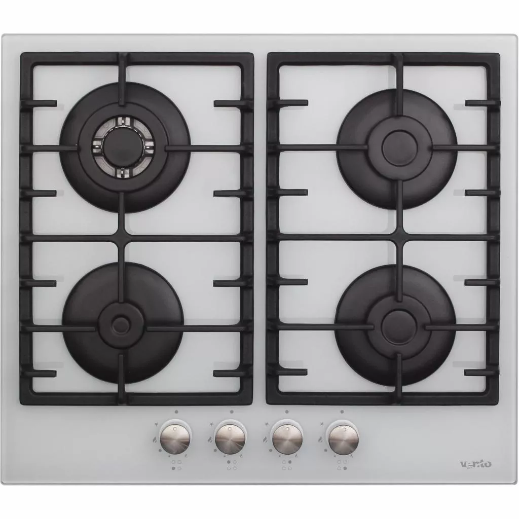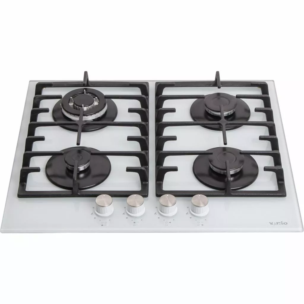 Панель управления модели VENTOLUX HSF640-M3G T (WH) представлена 4 поворотными регуляторами мощности конфорок, изготовленными из жаропрочного материала. Рабочий стол варочной поверхности выполнен из белой стеклокерамики. Данный материал не прихотлив в уходе. Для очистки от загрязнений следует использовать специальный скребок. Решетки горелок изготовлены из чугуна. Они могут выдерживать большие нагрузки, что позволяет готовить в крупногабаритной посуде.