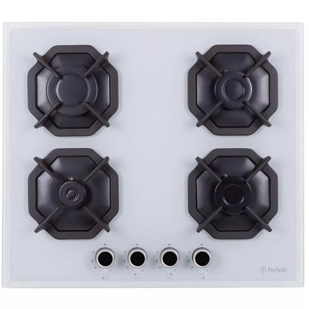 Встраиваемая варочная газовая поверхность PERFELLI HGG 61443 WH выполнена выполнена из закаленного стекла.