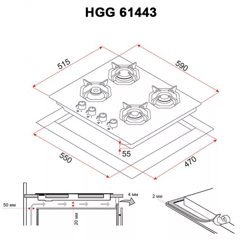 | Размеры ниши для встраивания | 55 x 47 см |