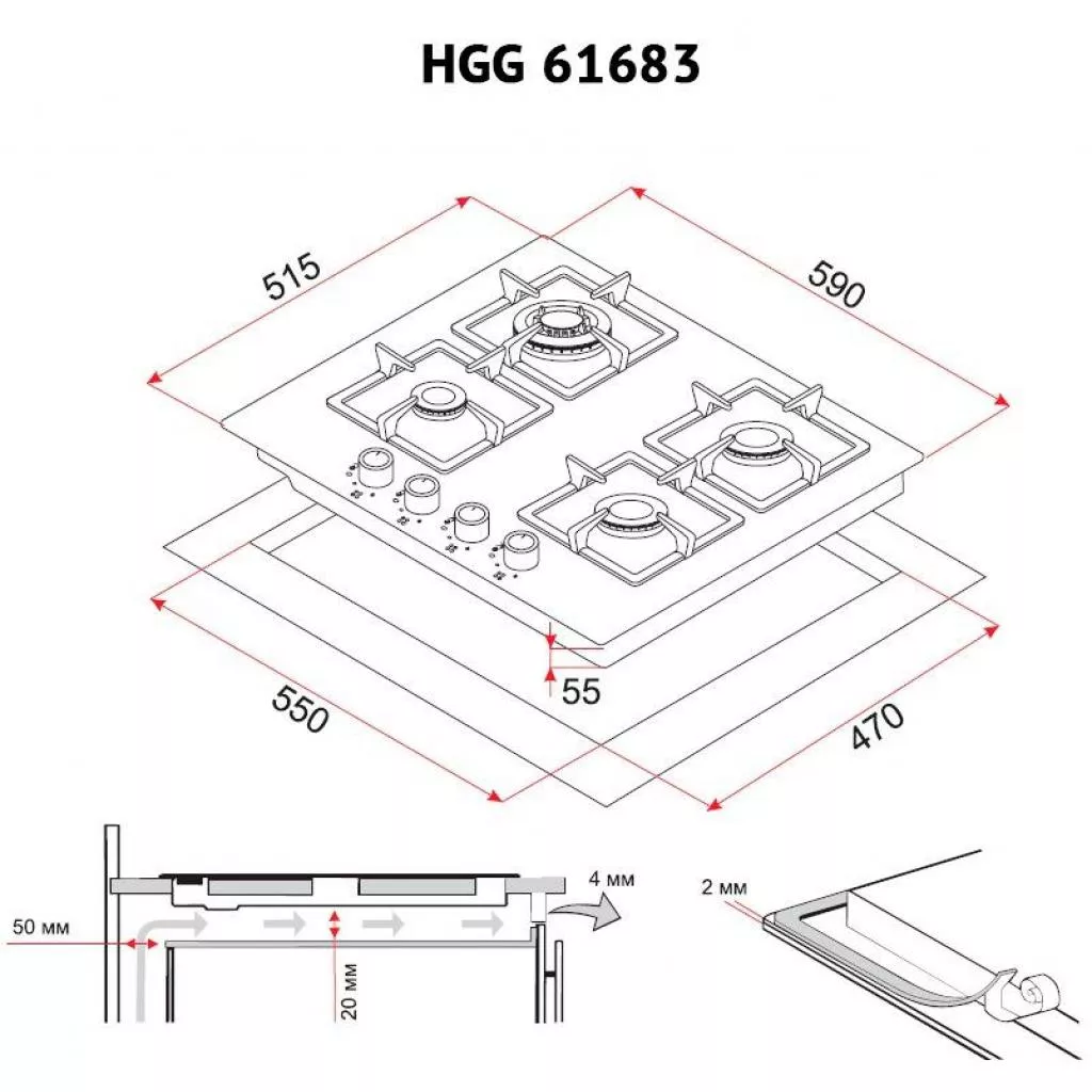Модель оснащена 4 газовыми конфорками различной мощности для более удобного выбора температуры и следованию по тому или иному рецепту блюд.