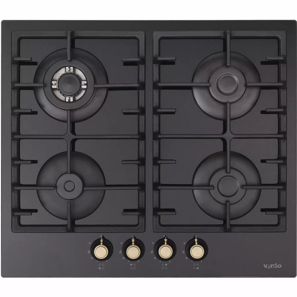 Независимая варочная поверхность от компании VENTOLUX оснащена 4 газовыми горелками. Мощность верхней левой wok-конфорки составляет 3000 ВТ, нижней левой – 1000 ВТ, две правые конфорки обладают мощностью 1700 ВТ. В устройстве предусмотрена система автоматического поджига, которая встроена в регуляторы мощности.