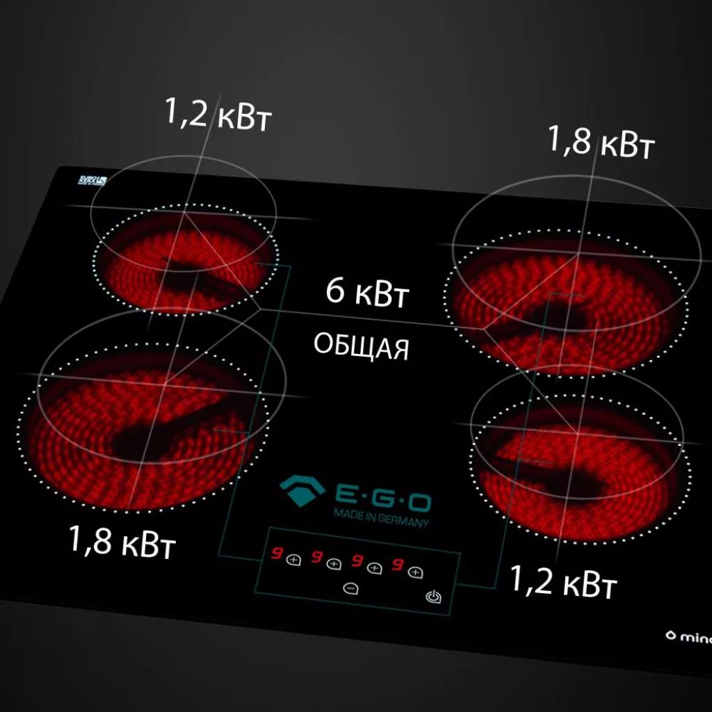 В поверхности реализовано 9 уровней мощности, что позволяет подобрать подходящую мощность нагрева для каждого блюда отдельно.