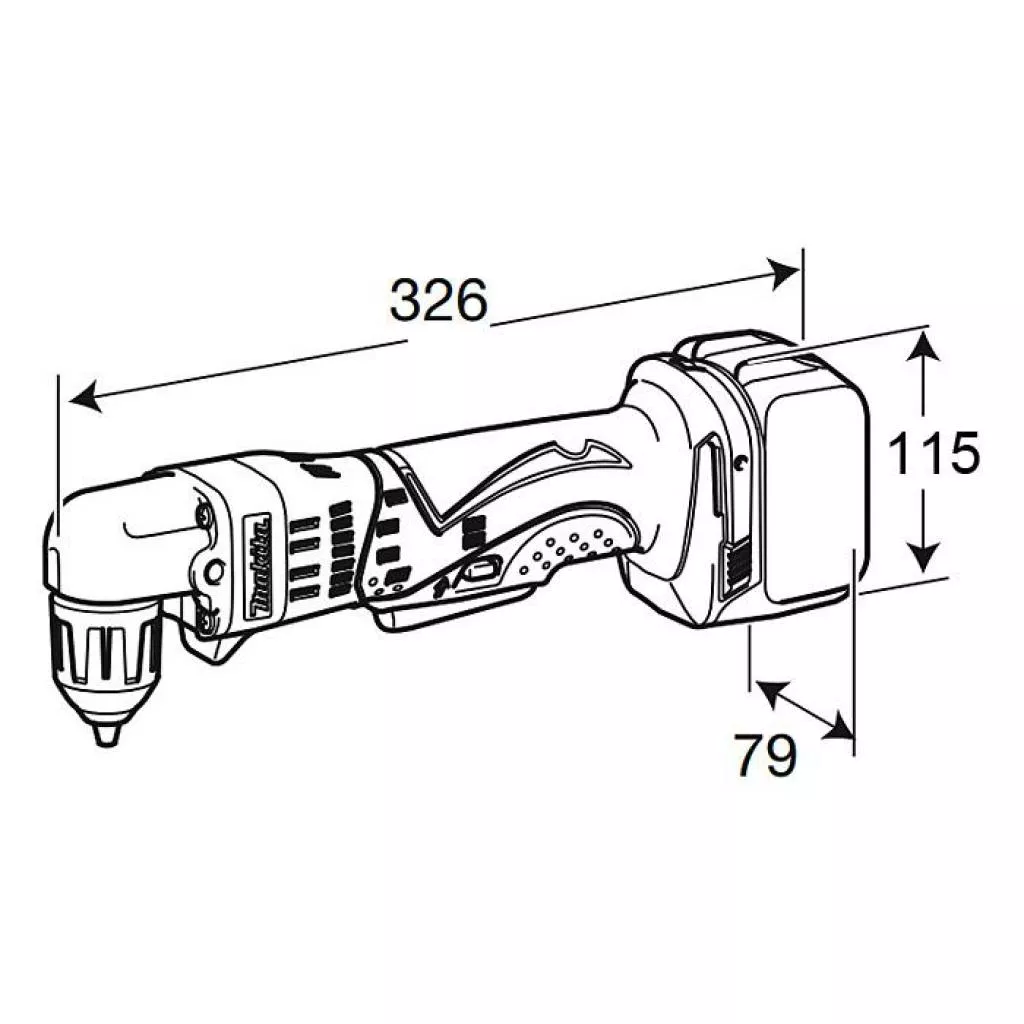 Легкая и компактная для оптимального удобства в эксплуатации, Makita DDA351Z имеет расстояние от края редуктора до конца сверлильного патрона всего 93 мм.