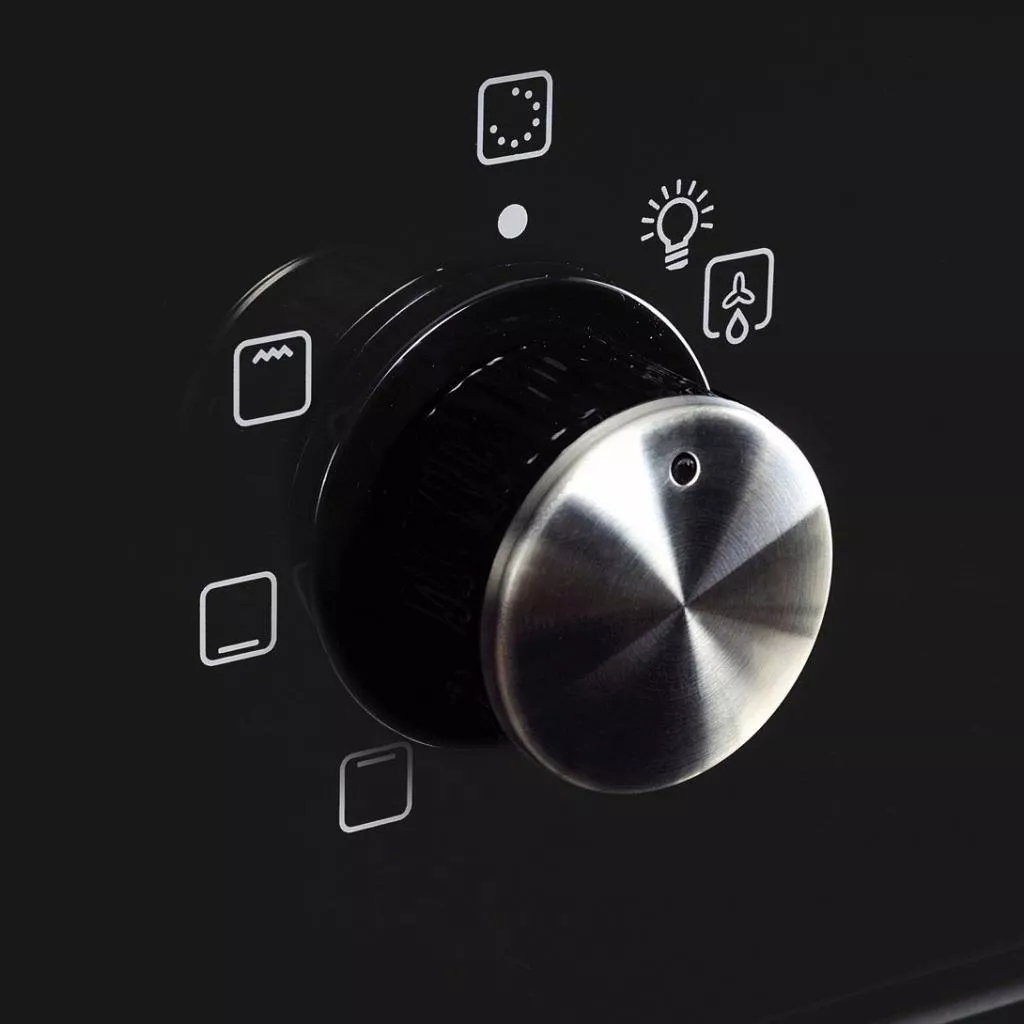 Печь Ventolux AMORETTO - многофункциональная 6-режимная духовка с элегантным черным стеклом и ручкой из нержавеющей стали.