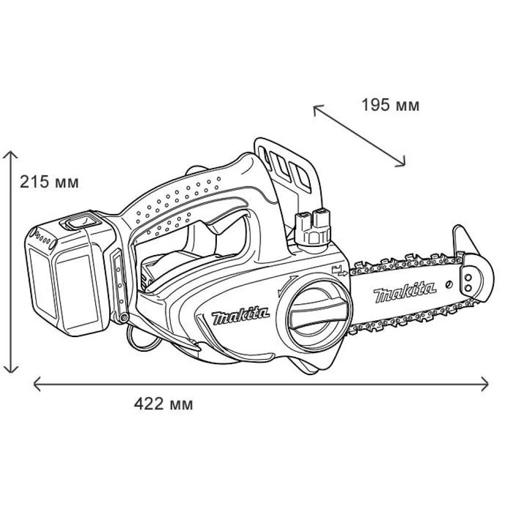Makita DUC122Z - это аккумуляторная цепная пила, предназначеная для распиловки древесины.