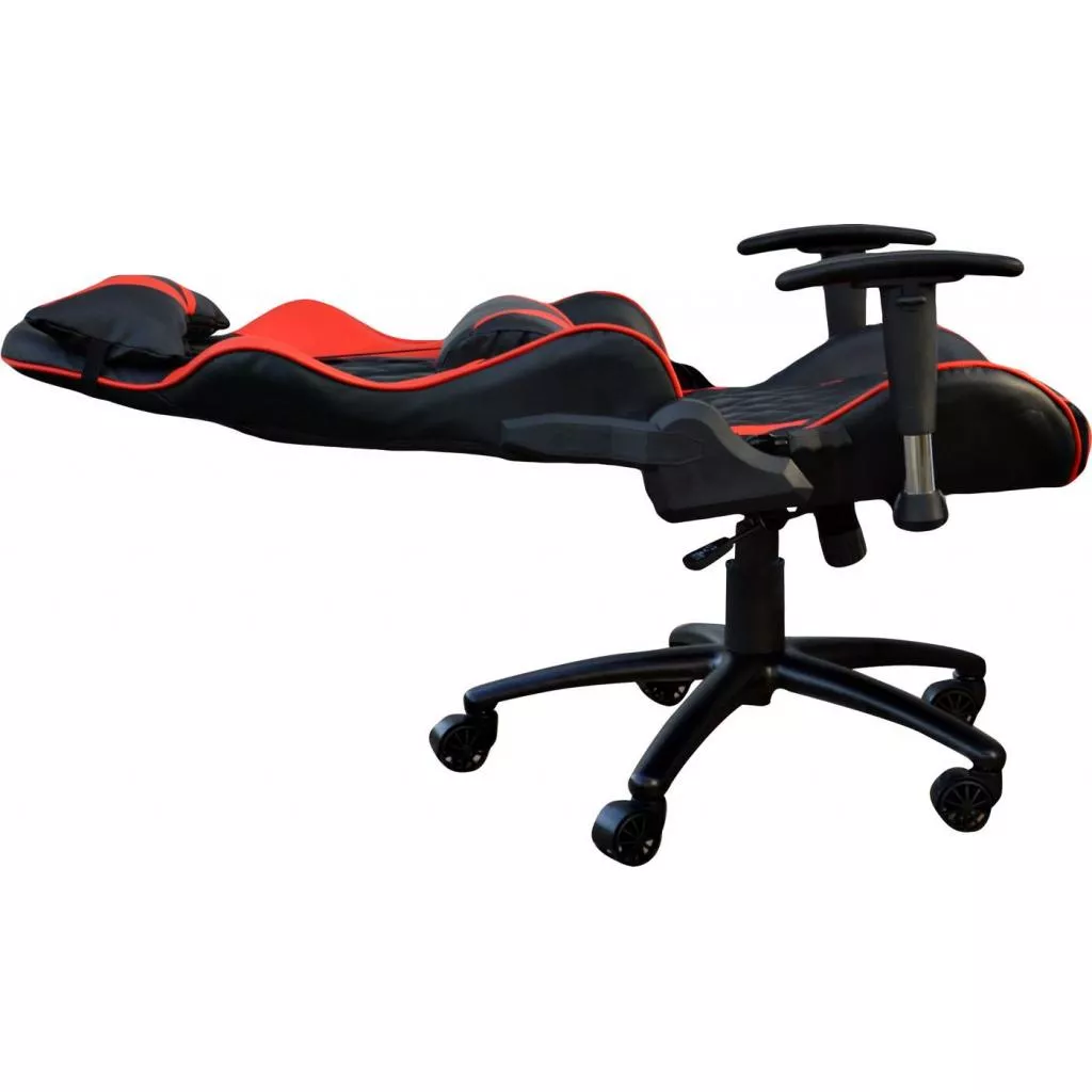 Отличительная особенность кресла в его весе. 20 килограмм — это весомый аргумент в пользу надёжности конструкции кресла. И в самой длительной игровой сессии приходит время перерыва. Спинка кресла откидывается назад и принимает горизонтальное положение.
