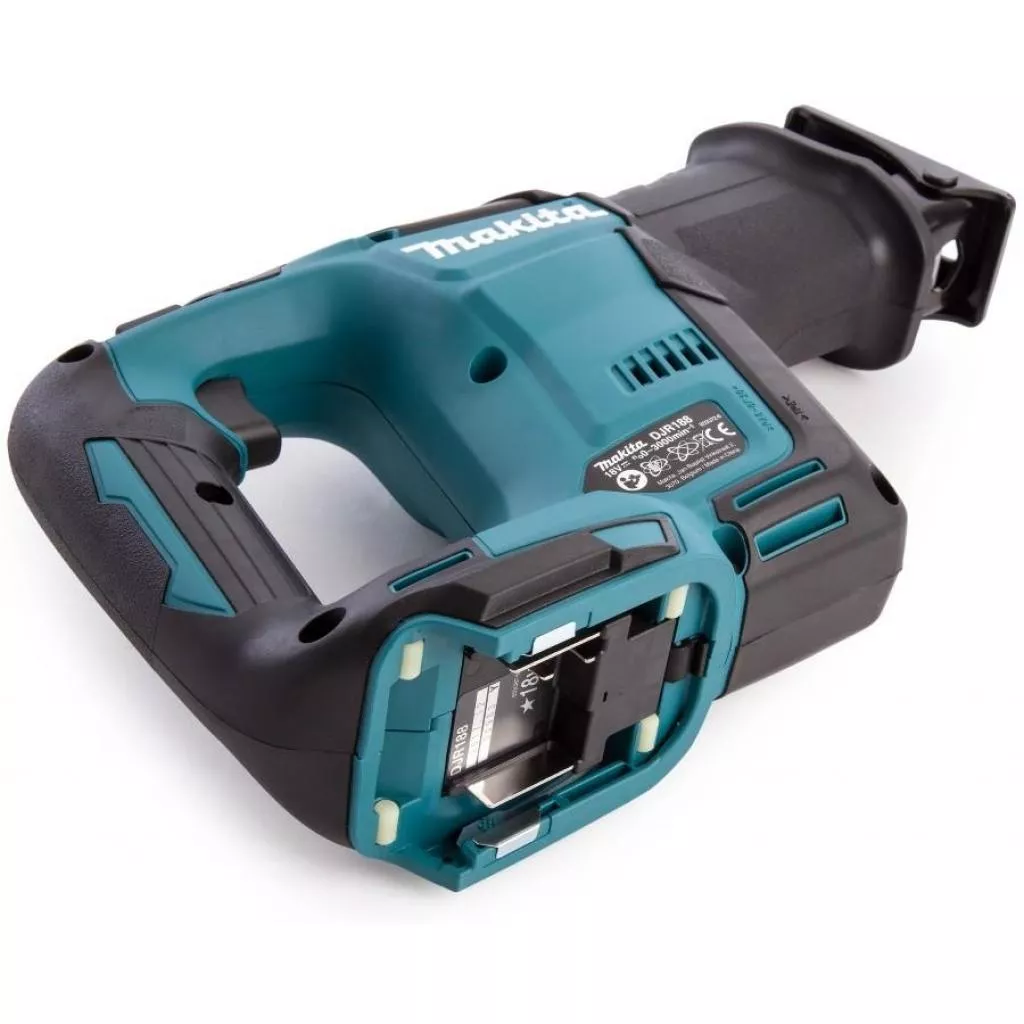 Аккумуляторная ножовка Makita DJR188Z - модификация инструмента в формате "каркас", что означает отсутствие в базовой комплектации чемодана для транспортировки, аккумуляторных батарей и зарядного устройства.