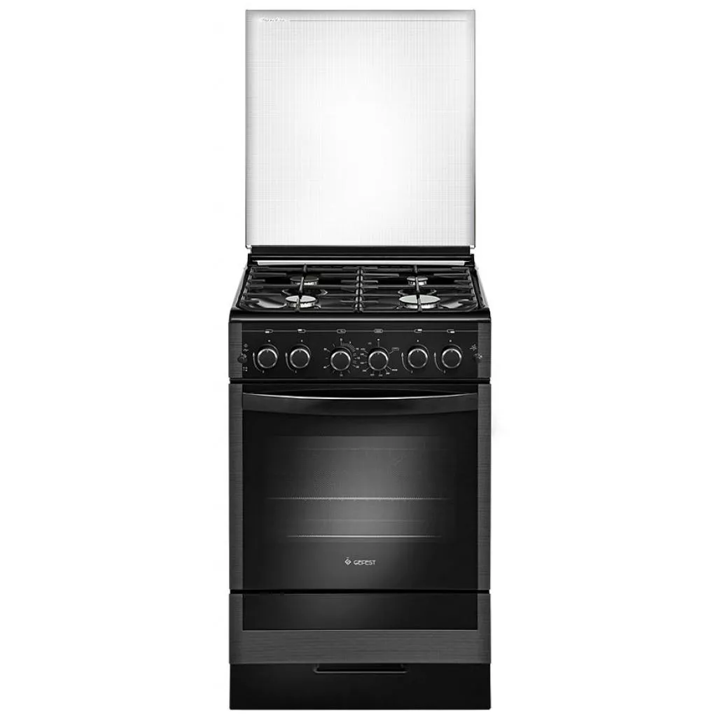 Gefest 5300 отличается от аналогичных устройств в первую очередь необычным цветовым решением. Серый цвет «под мрамор» будет отлично выглядеть в современном кухонном интерьере. Передняя панель и стекло духовки черные, благодаря чему эффектно выделяются белые элементы управления и ручка открывания дверцы духовки. Варочная панель и духовка Gefest 5300 – газовые. Есть в наличии одна конфорка большого диаметра для быстрого разогрева, одна маленькая (на ней удобно будет варить кофе), и две - стандартного размера, наиболее востребованные. Регуляторы подачи газа поворотные.