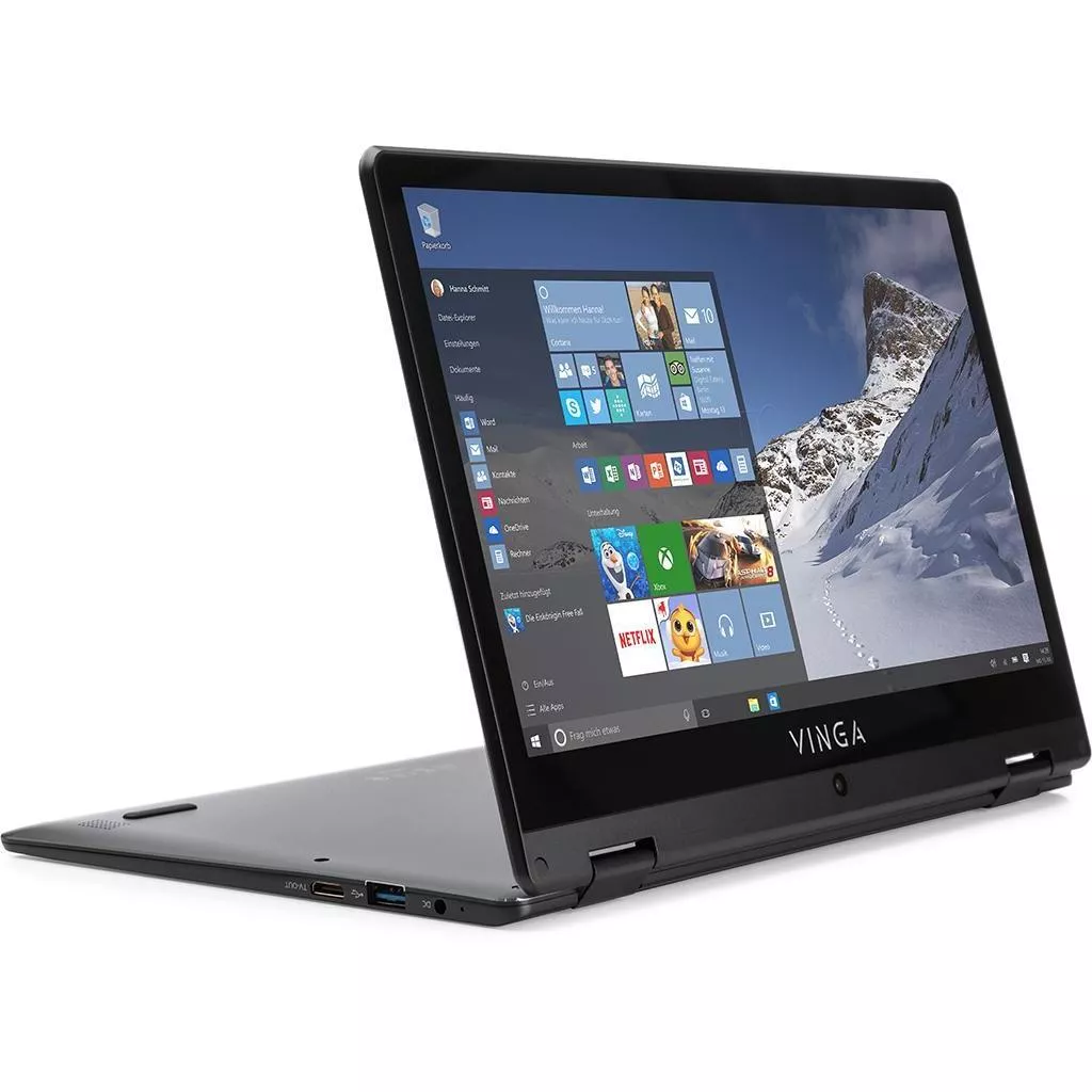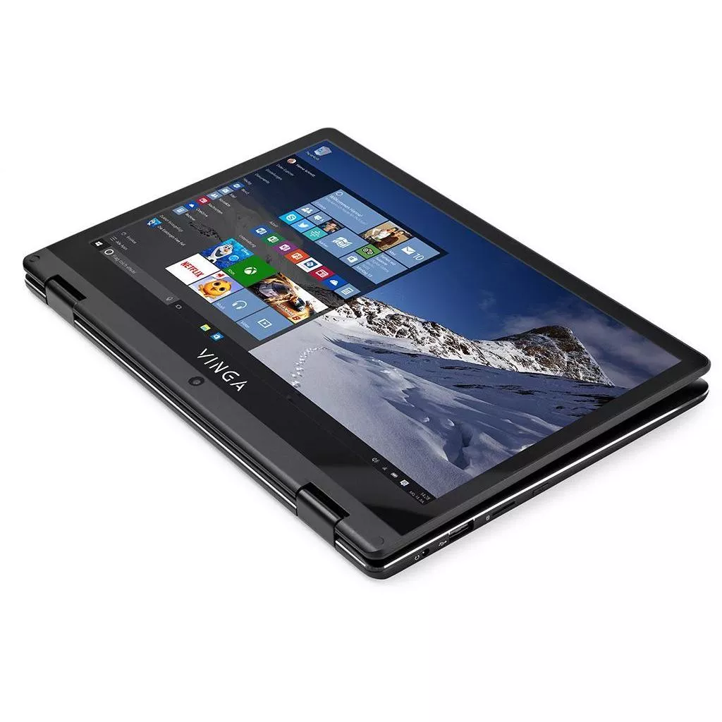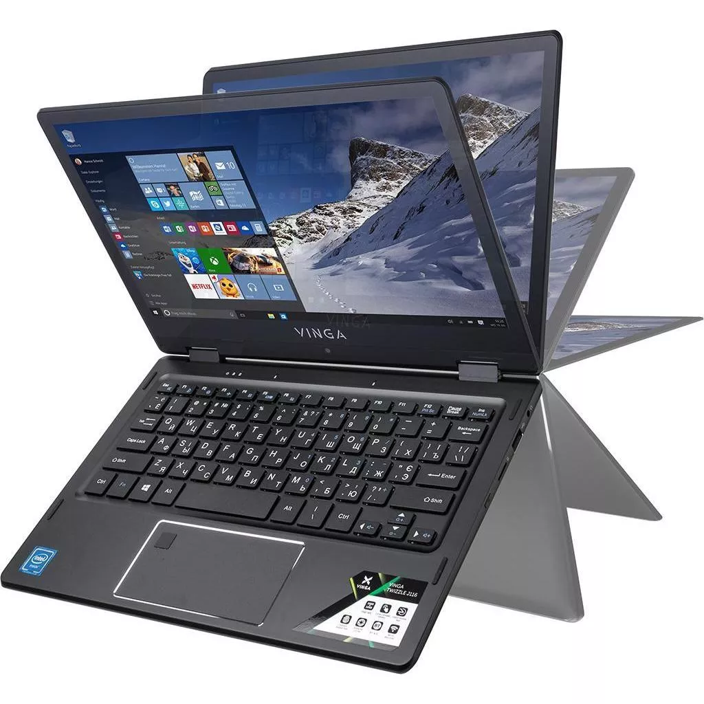 Ноутбук Vinga Twizzle J116 — удобная в работе модель, главным достоинством которой является портативность. Он обладает компактными габаритами (22.7x18.7x1.5 см) и весит всего 1.2 кг. Но этим его достоинства отнюдь не исчерпываются. Корпус, выполненный из прочного, устойчивого к ударам алюминия, окрашен в черный цвет. При необходимости крышку можно повернуть на 360°.