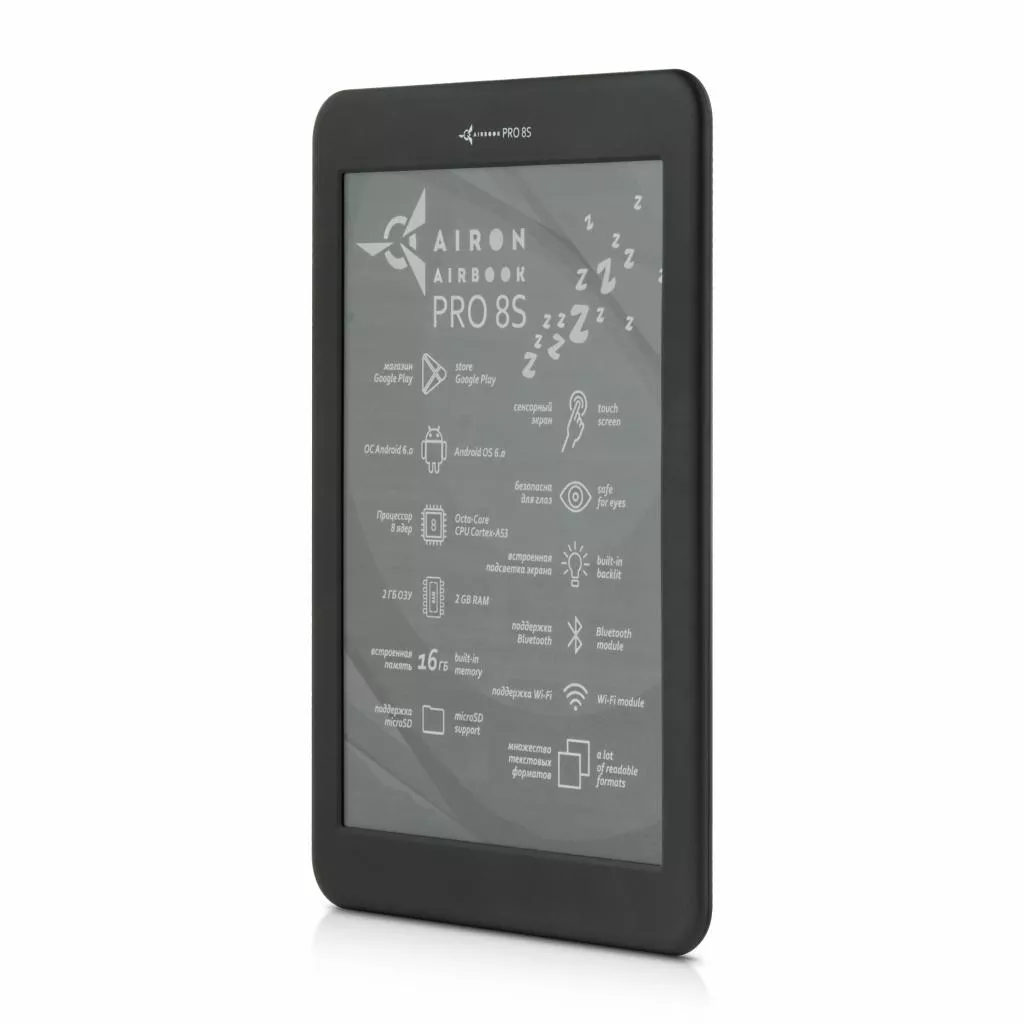 AIRBOOK PRO 8S оснащена 7.8 дюймовым E-Ink Carta HD 300 DPI дисплеем повышенной четкости и 16 ГБ встроенной памяти. Устройство оснащено литий-полимерной батареей с емкостью 3100 мАч.