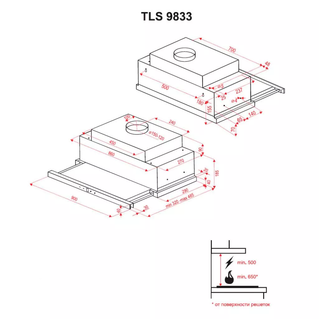 TLS 9833 - это телескопическая вытяжка, которая станет не только стильным дополнением Вашего интерьера, но и надежным помощником в домашних делах. Подобная модель очень удобна при использовании не только на ограниченном пространстве, но и на кухне любой площади.