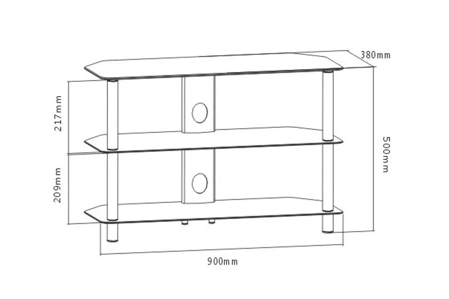 Тумба под телевизор ITech K108B Толщина стекла: 8/6/6 мм Максимально допустимая нагрузка весом до: 50 кг Для телевизоров диагональю до: 42" Черные ноги, черное стекло