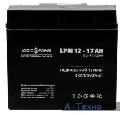 Предлагаем Вашему вниманию перезаряжаемую аккумуляторную батарею к ИБП LogicPower LPM 12В 17Ач (4162), которая позволит Вашему оборудованию продолжать работать при отключенной электроэнергии. Если по какой-то причине Ваша старая аккумуляторная батарея ИБП перестала выполнять свои функции (увеличение времени зарядки или полностью выход из строя), замените ее на эту аккумуляторную батарею от известного производителя LogicPower.
