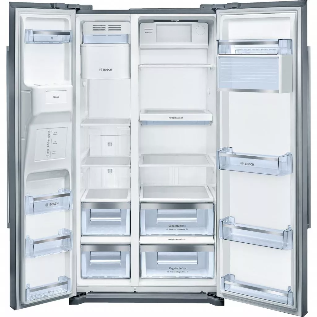 Холодильник BOSCH KAI 90 VI 20 (KAI90VI20)- большой, вместительный, модный и современный холодильник типа Side-by-Side с прекрасными техническими характеристиками, благодаря которым он обеспечивает самые лучшие условия хранения и замораживания продуктов. Двери из нержавеющей стали и удобные, длинные алюминиевые ручки отлично сочетаются не только друг с другом, но и великолепно украшают и дополняют любой кухонный интерьер. При этом, специальное покрытие стали AntiFingerPrint надолго сохранит первоначальный внешний вид и надежно защитит поверхность от пыли, грязи и даже отпечатков пальцев.Рейтинг страницы: 4.5