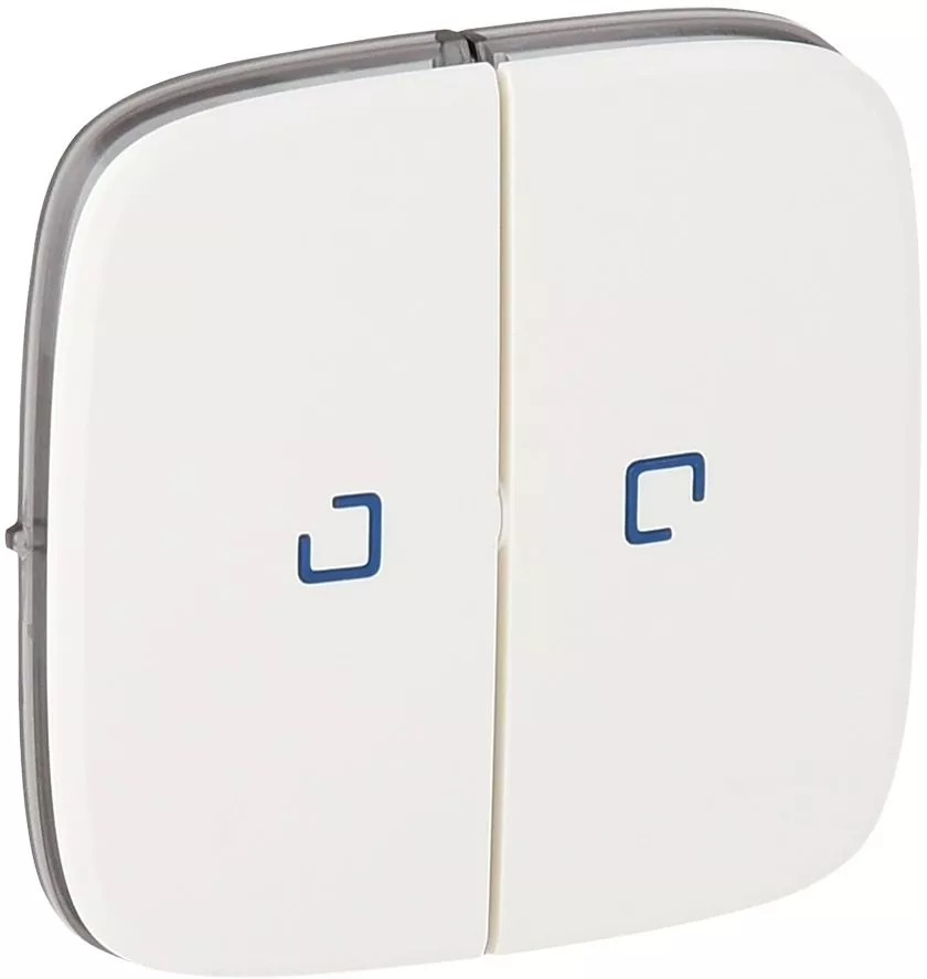 выключателя двухклавишного с подсветкой 10 AX - 250 В~, Кат. № 7 520 05 + 2 x 0 676 84переключателя двухклавишного на два направления с подсветкой 10 AX - 250 В~, Кат. № 7 520 28 + 2 x 0 676 86 (клавиша с голубой линзой в центре)двухклавишного кнопочного выключатель с Н.О./Н.З. контактами с подсветкой 6 A - 250 В~, Кат. № 7 520 18 + 2 x 0 676 86 (клавиша с голубой линзой в центре)