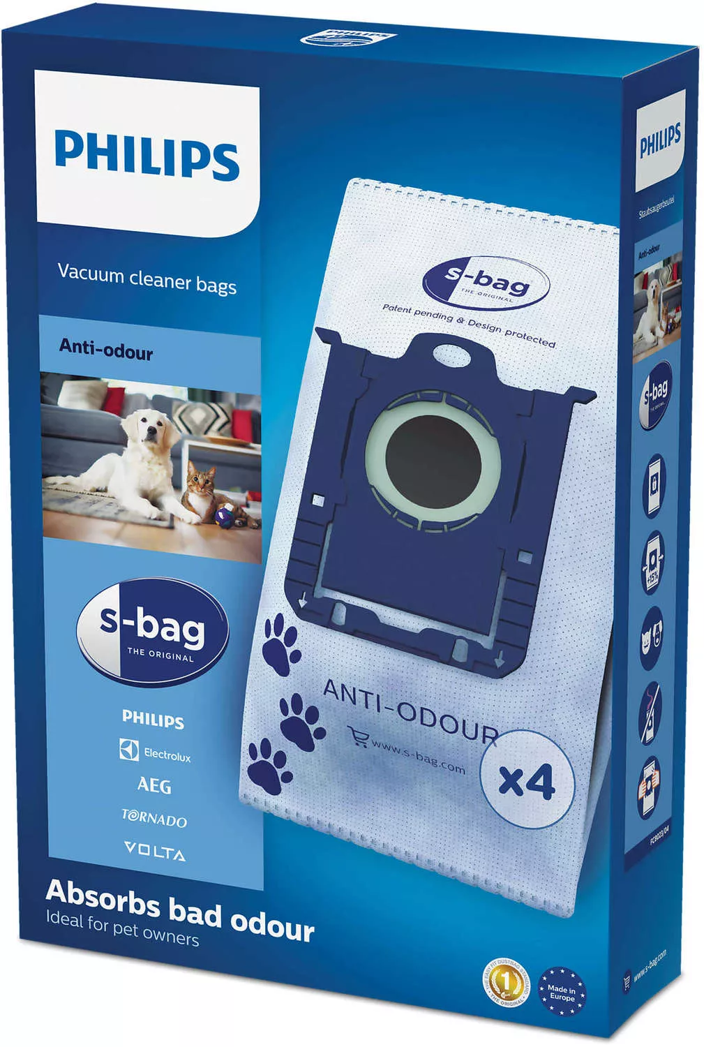 Оригинальный мешок Philips S-bag® подходит для всех пылесосов Philips и Electrolux (Electrolux, AEG, Volta, Tornado). Вам больше не придется долго выбирать подходящий мешок для сбора пыли, просто приобретите модель с логотипом S-bag®.