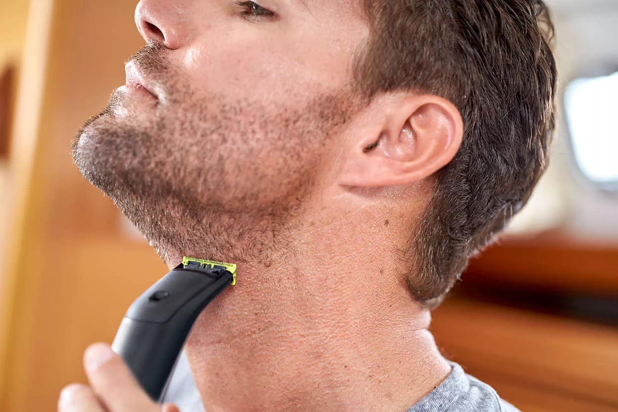 OneBlade повторяет контуры лица и обеспечивает качественное и комфортное подравнивание и бритье щетины на любых участках лица.