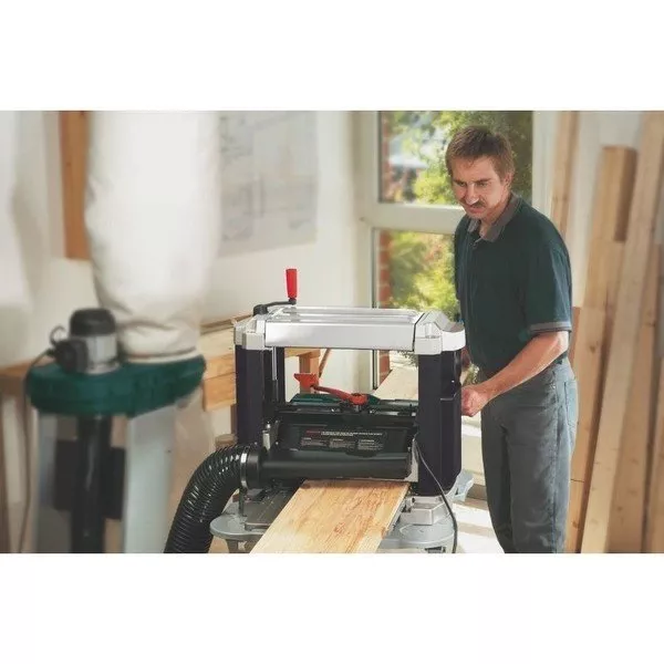 Точная регулировка - Регулировка толщины строгания дерева осуществляется поворотом рукоятки. На шкале видна градуировка необходимой высоты.Выбор толщины стружки - На панели можно выбрать толщину снимаемой стружки от 1 до 3 мм.Установка на стол - Возможность установки станка на стол для удобства работы.