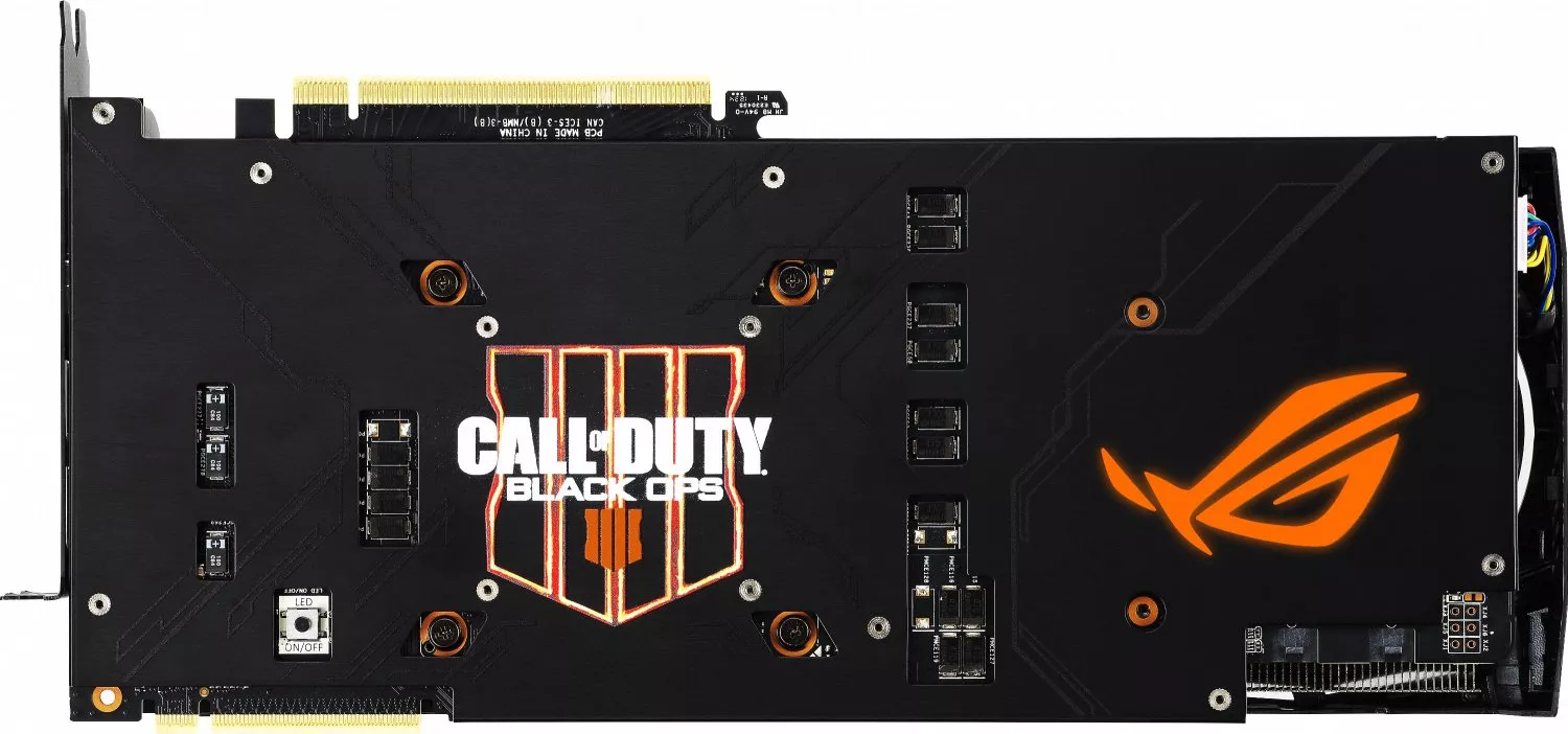 Чтобы усилить конструкцию видеокарты ROG Strix GeForce RTX 2080 Ti Call of Duty: Black Ops 4 Edition's, на ней используется специальная рама, предотвращающая изгиб и скручивание печатной платы.