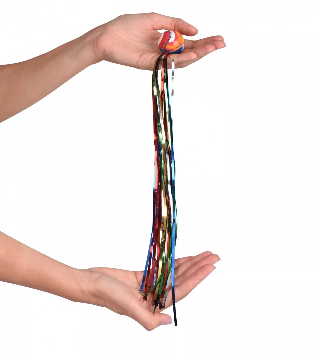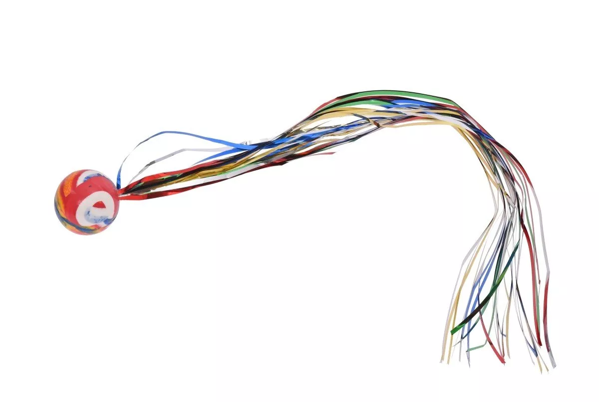 Цветной и прыгающий мячик с блестящими лентами поражает и восхищает. Попрыгунчик незаменим во время игр на свежем воздухе и активного отдыха. В игре прекрасно развивается координация движений, физическое развитие ребенка. Маленький попрыгунчик высоко подпрыгивает, а блестящие ленты ярко сияют. Разноцветная окраска и ленты вызывают желание подбросить мячик и наблюдать за его полетом, похожим на падение небесной звезды или кометы. Этот мячик развивает у малышей мелкую моторику, фантазию, концентрацию внимания и движений. Произведенный мяч из прочного и безопасного каучука.