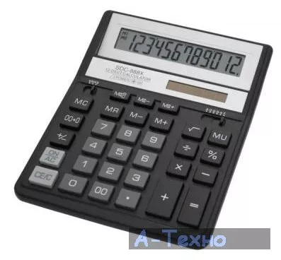 Калькулятор Citizen SDC-888XBL (1303XBL) имеет такие отличительные особенности: 12-разрядный ; двухуровневая память; клавиша удаления последней отображаемой цифры; клавиша "00"; клавиша знака числа; клавиша операции повышение цены; пластмассовые клавиши; акриловое покрытие; литиевая + солнечная батарея питания.