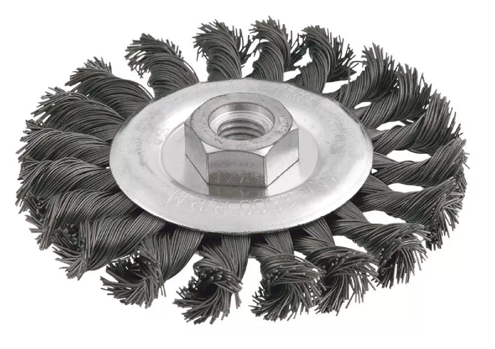 Проволочная щетка VERTO изготовлена из стальной проволоки. Усиленная конструкция корпуса позволяет эффективно чистить стальные конструкции. Хвостовик дает возможность использовать щетку для работы с угловыми шлифовальными машинами.