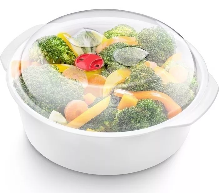 Прочный многофункциональный пластмассовый контейнер предназначен для нагрева продуктов в микроволновой печи.