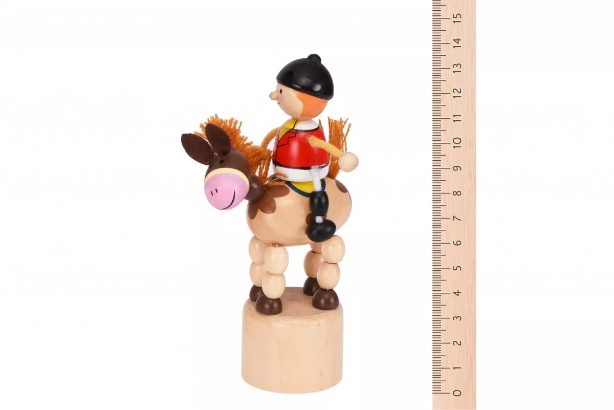Деревянная фигурка рыцаря на лошадке - интерактивная игрушка немецкого бренда Goki. Изделие подвижное, благодаря особой конструкции в виде нанизанных на нить деталей, стоит только нажать на кнопку под основанием и потрясти изделие. Танцующая игрушка произведена из натурального дерева, покрыта безопасными цветными красками на водной основе. Эта игрушка будет способствовать развитию мелкой моторики, координации движений, слуха, зрения, чувство ритма. Игрушки можно использовать в сюжетно-ролевых играх.